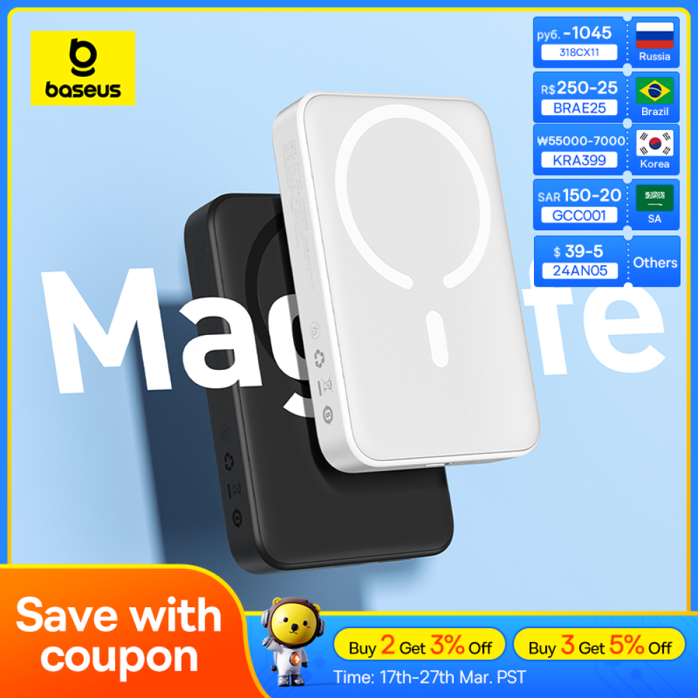 Baseus-باور بانك لاسلكي صغير مغناطيسي ، 10000mAh ، 20000mAh ، شحن سريع ، الاستيقاظ التلقائي ، باور بانك Magsafe لهاتف iPhone 15 ، 14 ، 13 Pro Max